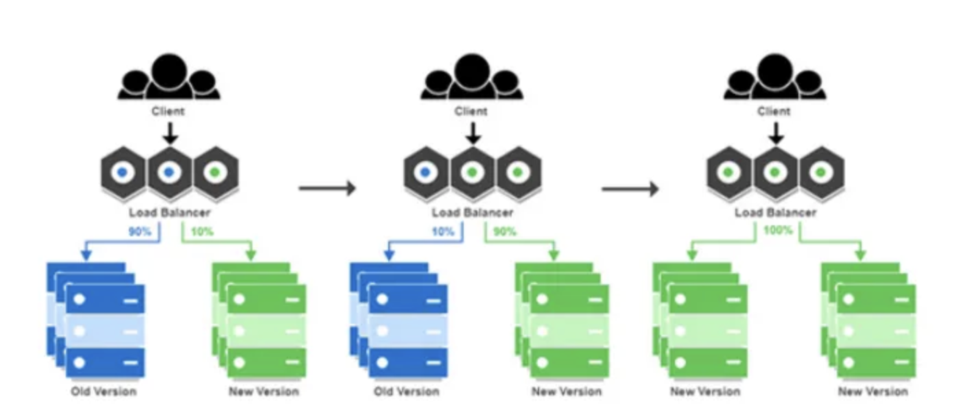 예를 들어 10대 중 2대씩 새 버전으로 바꾸고, 문제 없으면 다음 2대를 교체하는 방식